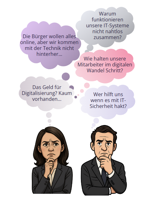 Wir begleiten Kommunen und Verwaltungen auf dem Weg zu effizienten, digitalen und bürgerorientierten Strukturen. Mit unseren fünf aufeinander abgestimmten Leistungsbereichen schaffen wir messbare Verbesserungen – schnell, strukturiert und nachhaltig.